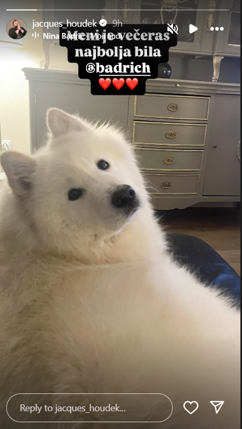 Meni je večeras najbolja bila Nina Badrić - napisao je Jacques Houdek na Instagramu. Glazbenik je kao i brojni naši poznati pratio prvo polufinale Dore, pa se odlučio oglasiti. Uz podršku Nini, dodao je i sliku svog psa. Jacques Houdek, jedan od najistaknutijih hrvatskih pop izvođača, tijekom svoje karijere više je puta sudjelovao na Dori, hrvatskom izboru za pjesmu Eurovizije. Njegovi nastupi uključuju pjesme poput "Čarolija" (2002.), "Na krilima ljubavi" (2003.), "Nema razloga" (2004.), "Nepobjediva" (2005.), "Umrijeti s osmijehom" (2006.) i "Stotinama godina" (2011.). Unatoč višestrukim pokušajima, pobjedu na Dori nije ostvario sve do 2017. godine, kada je interno odabran za predstavnika Hrvatske na Euroviziji s pjesmom "My Friend". Na Euroviziji 2017. u Kijevu, Houdek je s pjesmom "My Friend" nastupio u drugoj polufinalnoj večeri, gdje je izborio plasman u finale zauzevši 8. mjesto s 141 bodom. U finalu je ostvario 13. mjesto među 26 izvođača, osvojivši ukupno 128 bodova. Ovaj rezultat predstavljao je značajan uspjeh za Hrvatsku na Euroviziji, a Houdekov jedinstveni vokalni stil i izvedba ostavili su snažan dojam na europsku publiku.