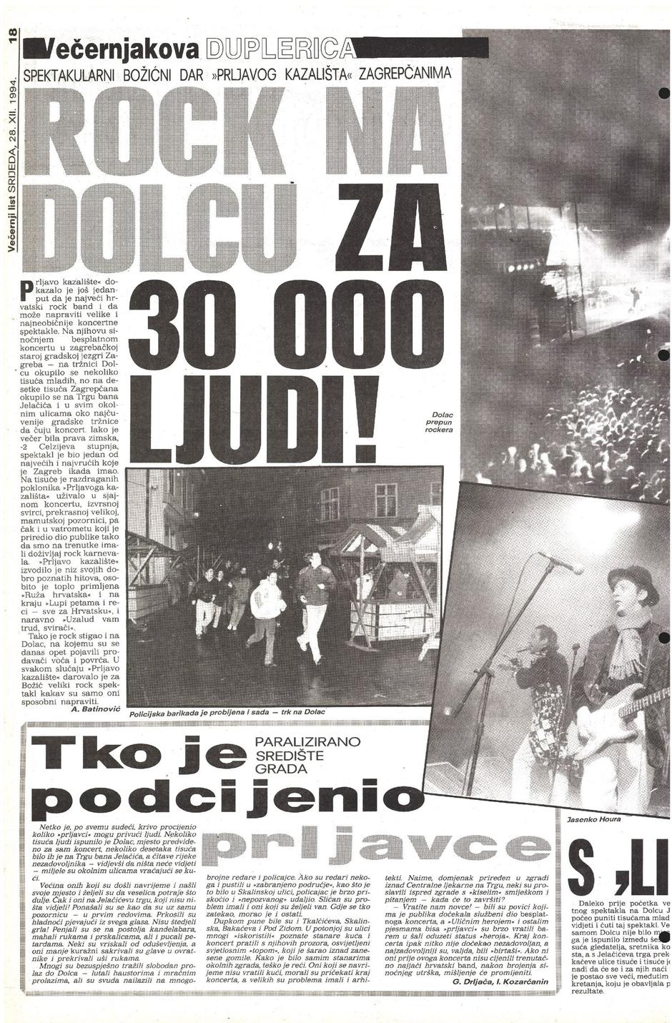 Na fotografiji ispod možete pogledati izdanje Večernjeg lista iz 1994. kada se dogodio legendarni koncert.