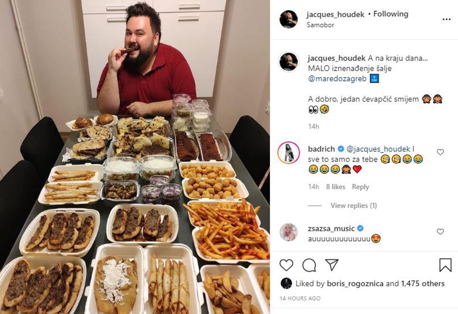 Na svojim je društvenim mrežama objavio fotografije hrane kojom je počastio svoje uzvanike. "A na kraju dana, MALO iznenađenje.. A dobro, jedan ćevapčić smijem", našalio se Jacques.