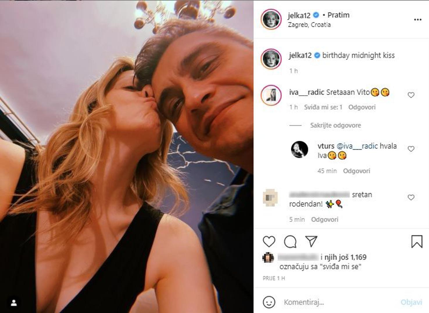 Jelena je kasnije objavila i fotografiju na kojoj ga ljubi u lice, a uz to je napisala "rođendanski poljubac u ponoć".
