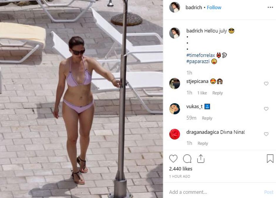 Objavila je fotografiju u ljubičastom dvodijelnom kupaćem kostimu uz opis u kojem veselo pozdravlja novi mjesec, srpanj. Vrijeme za odmor, napisala je Nina, a osoba koja stoji iza uslikane fotografije nije poznata. Zadovoljstvo koje osjeća pjevačica ne iznenađuje s obzirom na to da će upravo sutra proslaviti svoj 47. rođendan.