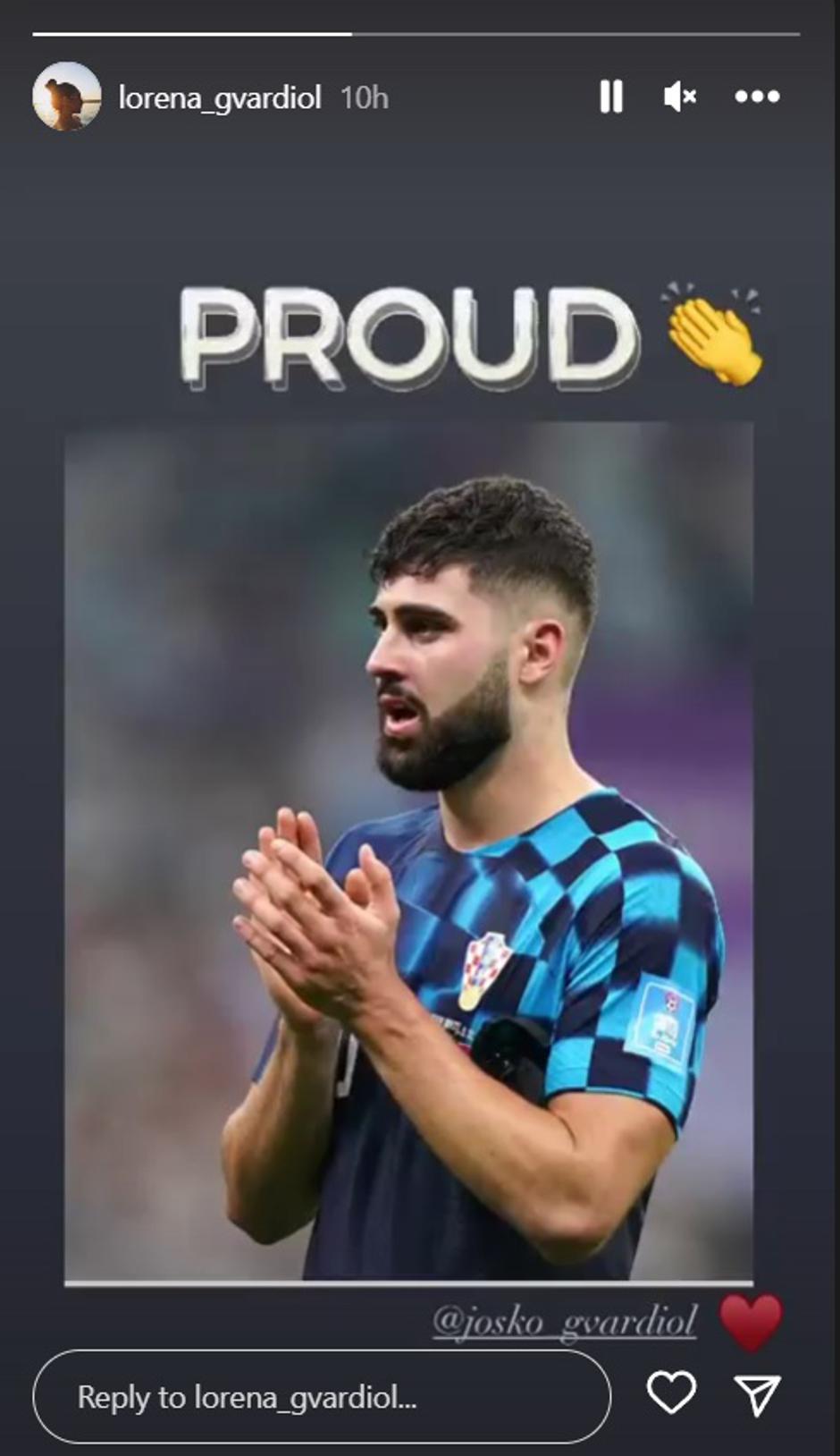 Odmah mu je prišao Marko Livaja kako bi ga utješio, a Joškova sestra Lorena na Instagramu je objavila poruku i pružila mu podršku. U storyjima je objavila fotografiju svog brata i napisala: Ponos! Bodrila je Joška na prethodnim utakmicama zajedno s drugom sestrom Frankom, ali nisu bile u Kataru na polufinalu jer je, prema pisanjima medija, na ovu utakmicu stigao njihov otac Tihomir.