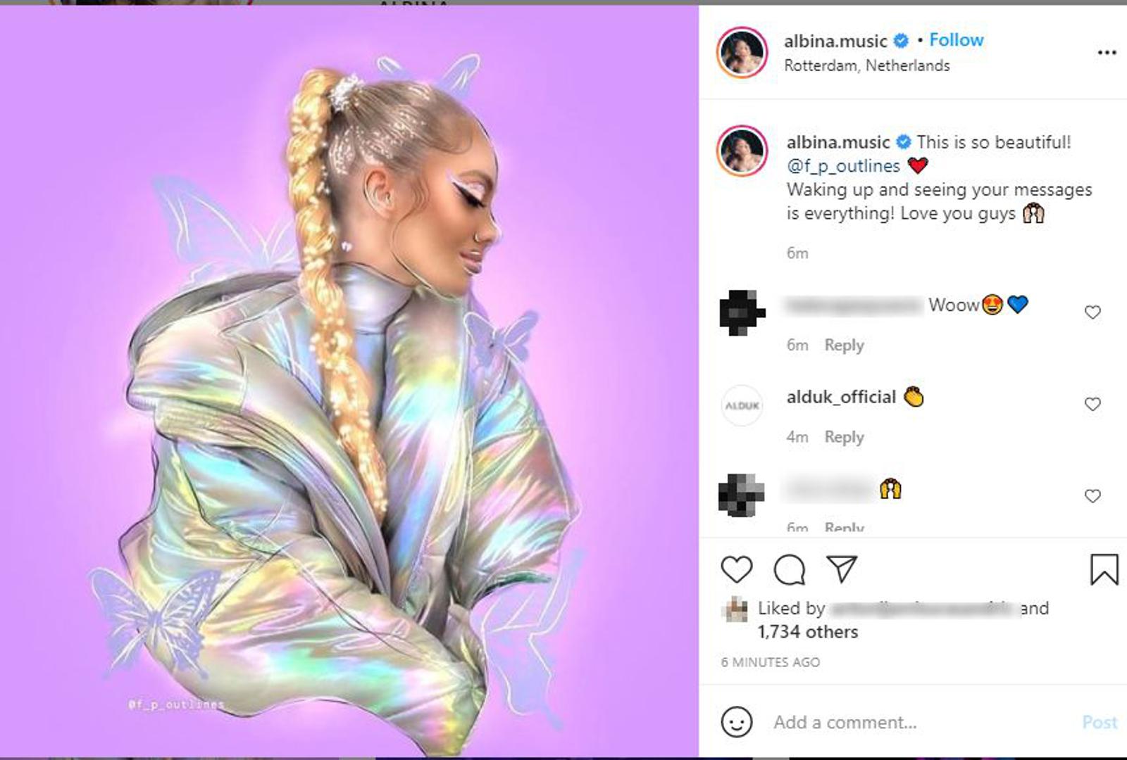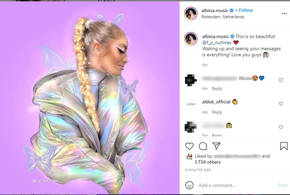 Nakon što nije uspjela izboriti plasman u finale ovogodišnjeg Eurosonga, naša predstavnica Albina Grčić (22) ostaje optimistična i zasuta porukama fanova diljem svijeta. Prije nepunih 15 minuta oglasila se na Instagramu s ilustracijom koju su joj uputili fanovi.