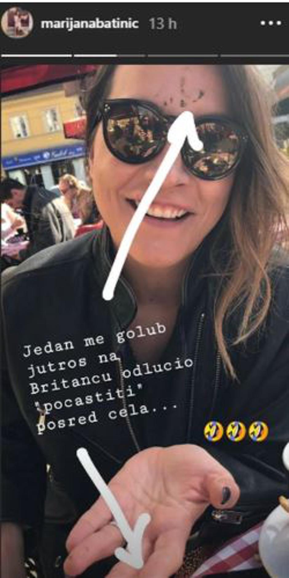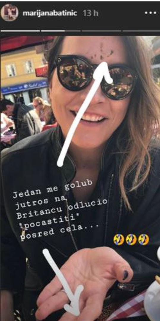 – Jedan me golub jutros na Britancu odlučio "počastiti" posred čela…– napisala je na fotografiji.