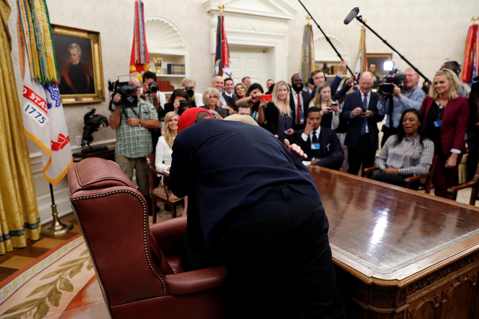 Kanye je svojim ponašanjem tijekom sastanka s Trumpom iznenadio i samog Trumpa. Reper je lupao šakama po stolu u Ovalnom uredu, psovao je, zagrlio Trumpa i izjavio mu ljubav.