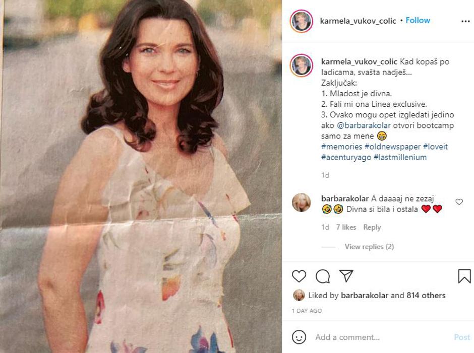 "Kad kopaš po ladicama, svašta nadješ… Zaključak: 1. Mladost je divna. 2. Fali mi ona Linea exclusive. 3. Ovako mogu opet izgledati jedino ako Barbara Kolar otvori bootcamp samo za mene", napisala je voditeljica pored fotografije.