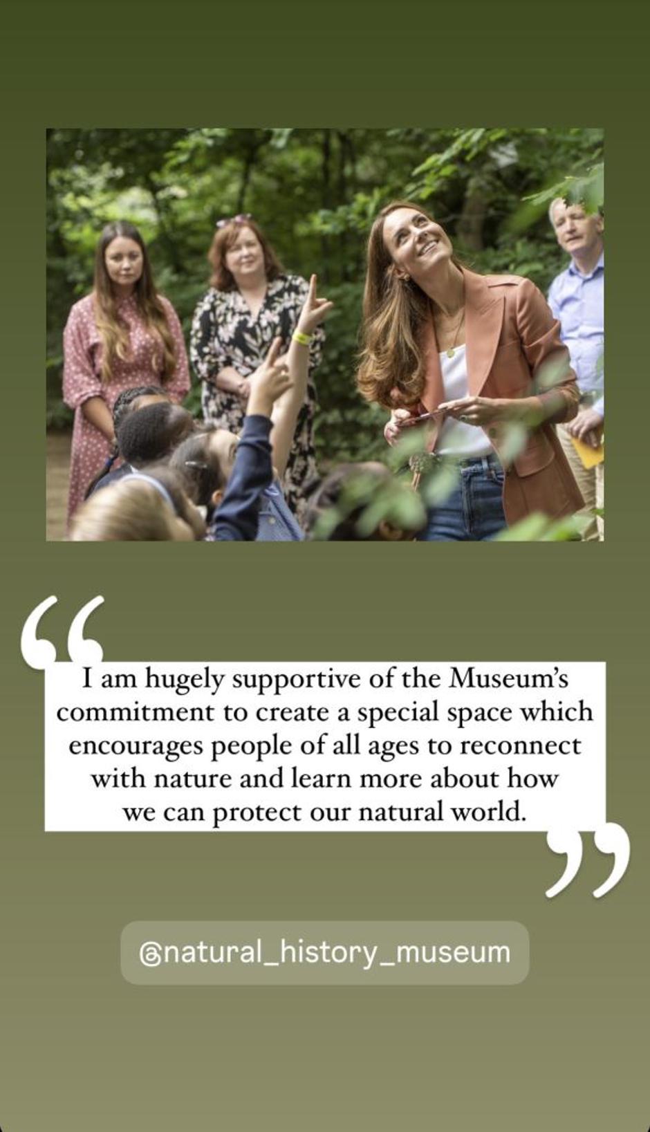 Obožavatelje kraljevske obitelji oduševilo je pojavljivanje Kate Middleton na muškom finalu Wimbledona u nedjelju, a princeza od Walesa sada se i glasila na društvenim mrežama. Naime, ona je na društvenoj mreži Instagram podijelila nekoliko svojih fotografiju snimljenih 2021., kada je posjetila Prirodoslovni muzej u Londonu.