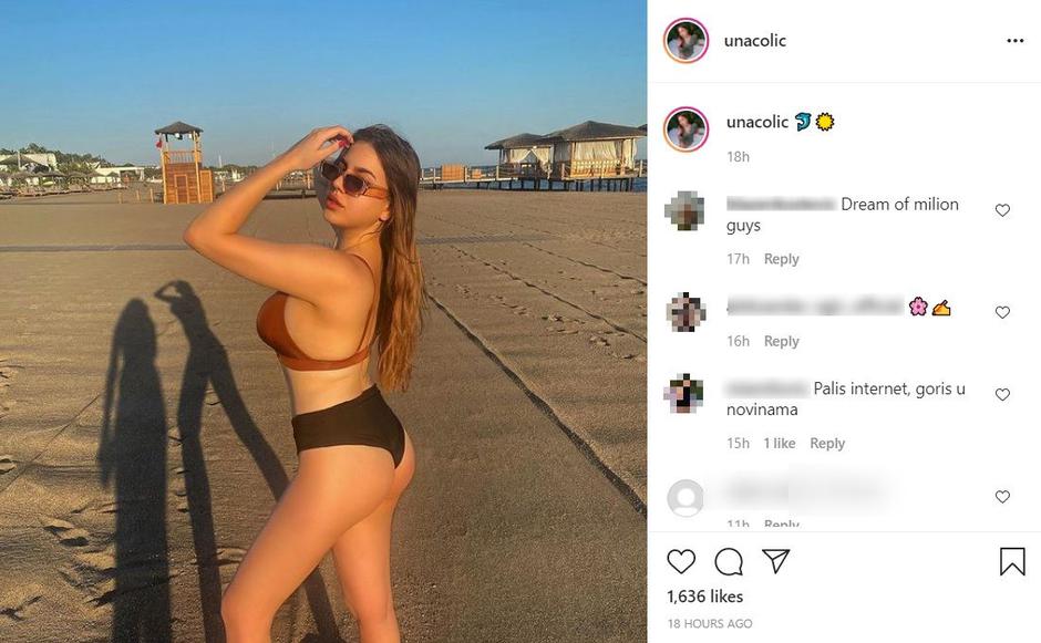 Una Čolić (19), starija kći jednog od najpopularnijih pjevača u regiji Zdravka Čolića, u posljednje vrijeme privlači pozornost provokativnim fotografijama koje objavljuje na Instagramu. Ovog puta pratitelje je oduševila fotografijom s plaže, a pozirala je u zanosnoj pozi.
