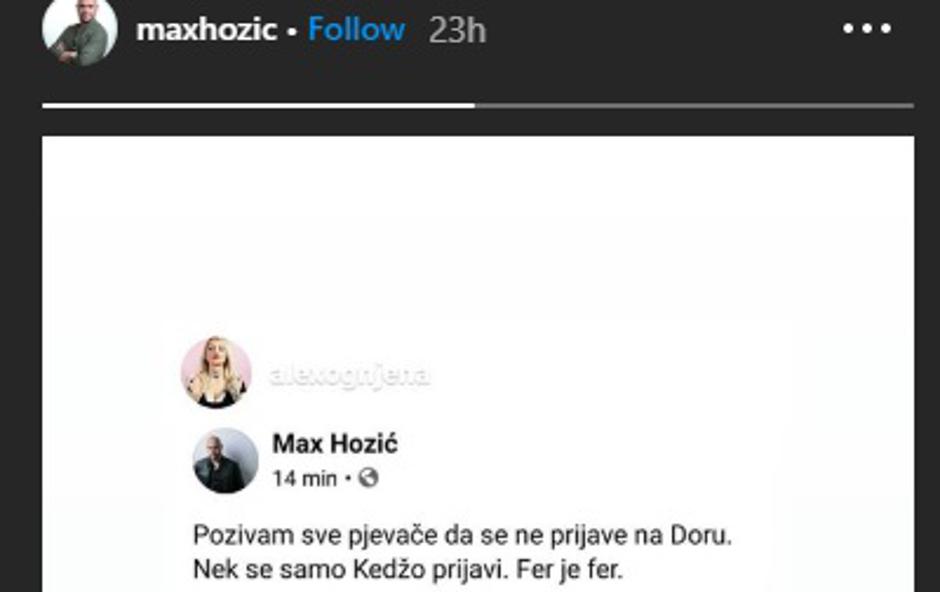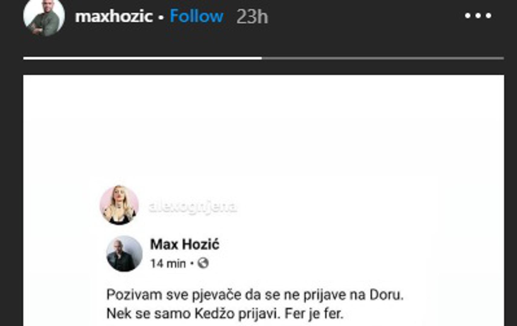 – Pozivam sve pjevače da se ne prijave na Doru. Neka se samo Kedžo prijavi. Fer je fer – rekao je Hozić. HRT se zahvalio Damiru Kedži na odličnoj suradnji i napisali su:
