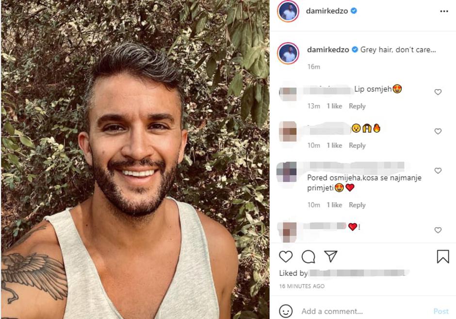 Domaći pjevač Damir Kedžo (34) na svojem je Instagram profilu podijelio fotografiju na kojoj je u opuštenom izdanju. "Imam sijedih i briga me", napisao je u opisu fotografije na kojoj većinu pažnje okupira osmijeh. U opisu se referirao na nekoliko vlasi koje na fotografiju imaju drugačiju pigmentaciju od njegove crne kose.
