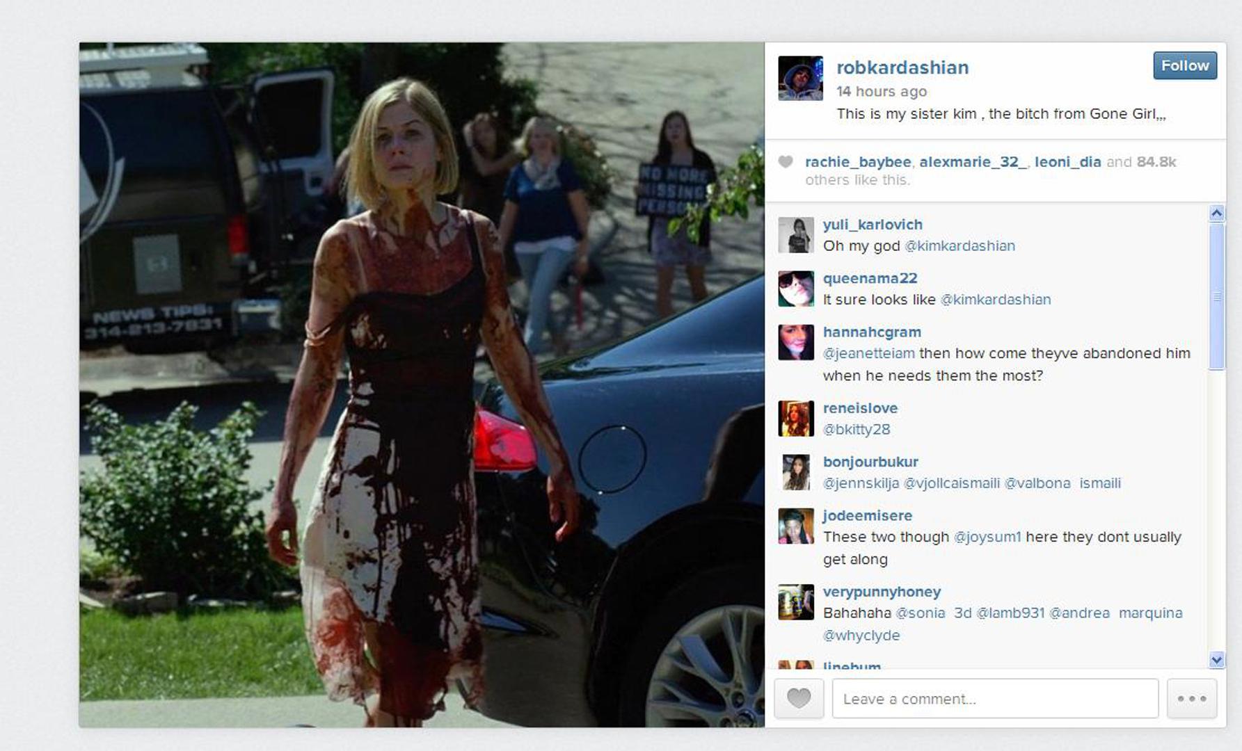 Objavio je nedavno post na Instagramu u kojem je povukao paralelu između sestre Kim i lika koji je Rosamund Pike glumila u filmu 'Gone Girl'