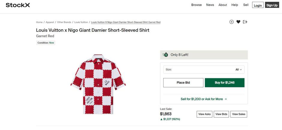Na potonjoj stranici cijena posljednje prodane košulje bila je  nešto malo više od 13.553 kuna, a sada je se može naći i za malo više od 9 tisuća kuna.