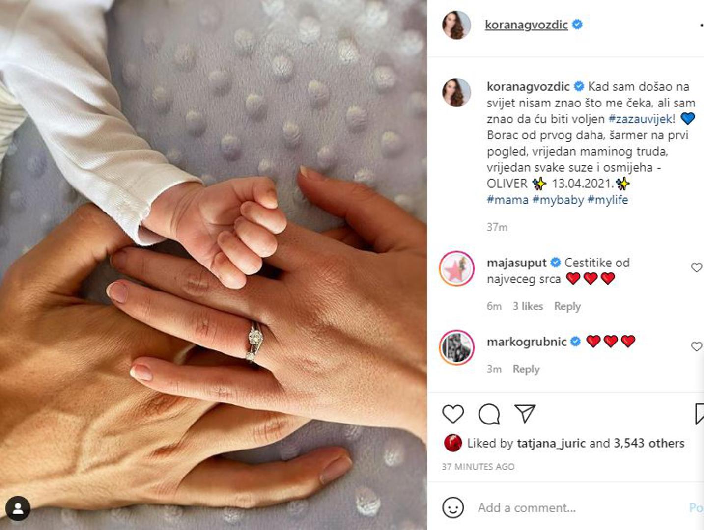 "Kad sam došao na svijet nisam znao što me čeka, ali sam znao da ću biti voljen #zazauvijek!  Borac od prvog daha, šarmer na prvi pogled, vrijedan maminog truda, vrijedan svake suze i osmijeha - OLIVER, 13.04.2021", napisala je na Instagramu.