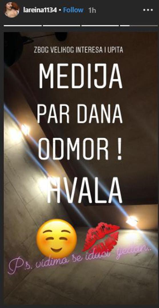 - Zbog velikog interesa i upita medija par dana odmor! Hvala. P. S. Vidimo se idući tjedan - napisala je Kristina i poslala veliku pusu pratiteljima u obliku emotikona.