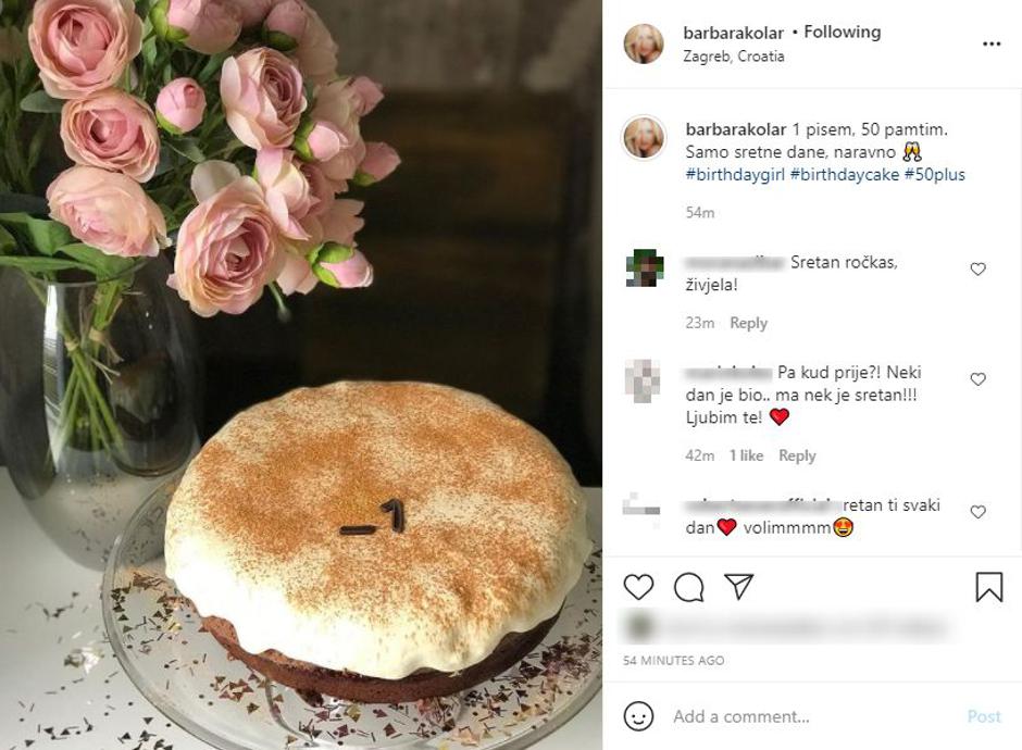 Dok čestitke nastavljaju pristizati, poznata voditeljica Barbara Kolar koja danas slavi 51. rođendan uživa u komadu fine torte. Fotografijom na Instagramu pohvalila se ulaskom u šesto desetljeće.