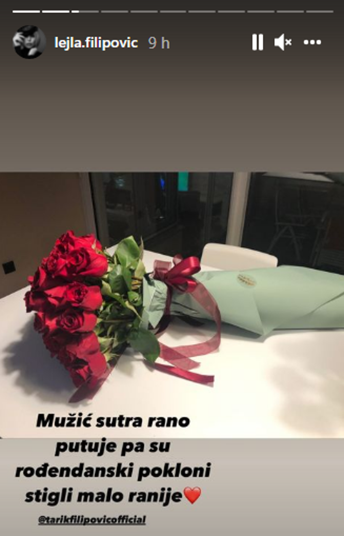 "Mužić sutra rano putuje pa su pokloni stigli malo ranije", napisala je uz fotografiju predivnog buketa crvenih ruža.