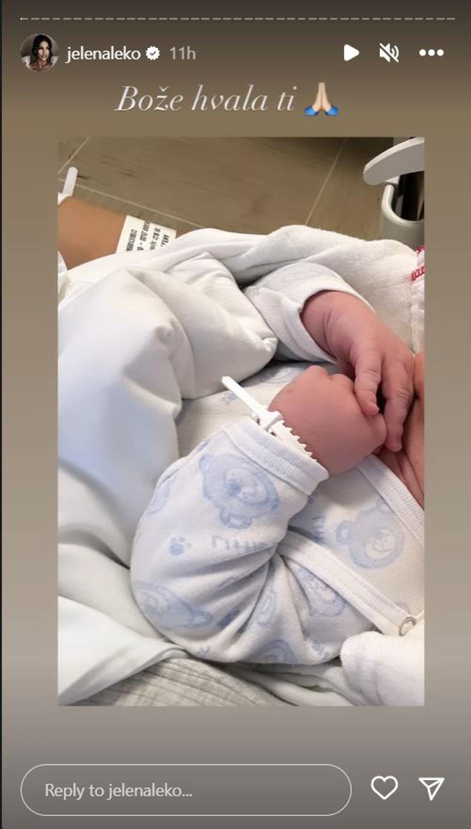 - Bože hvala ti - napisala je Jelena uz sliku iz bolnice na kojoj se vide bebine ručice.