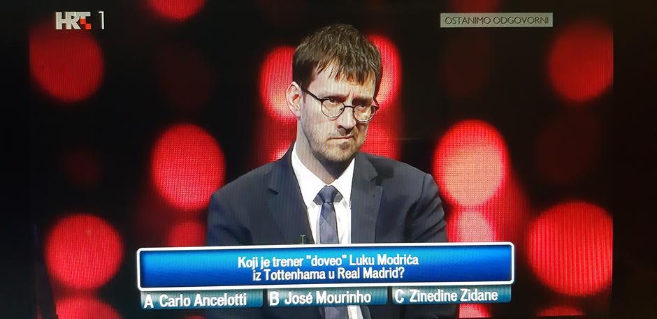 Riječ je bilo o jednom sportskom pitanju koje je glasilo: 'Koji je trener 'doveo' Luku Modrića iz Tottenhama u Real Madrid?'.