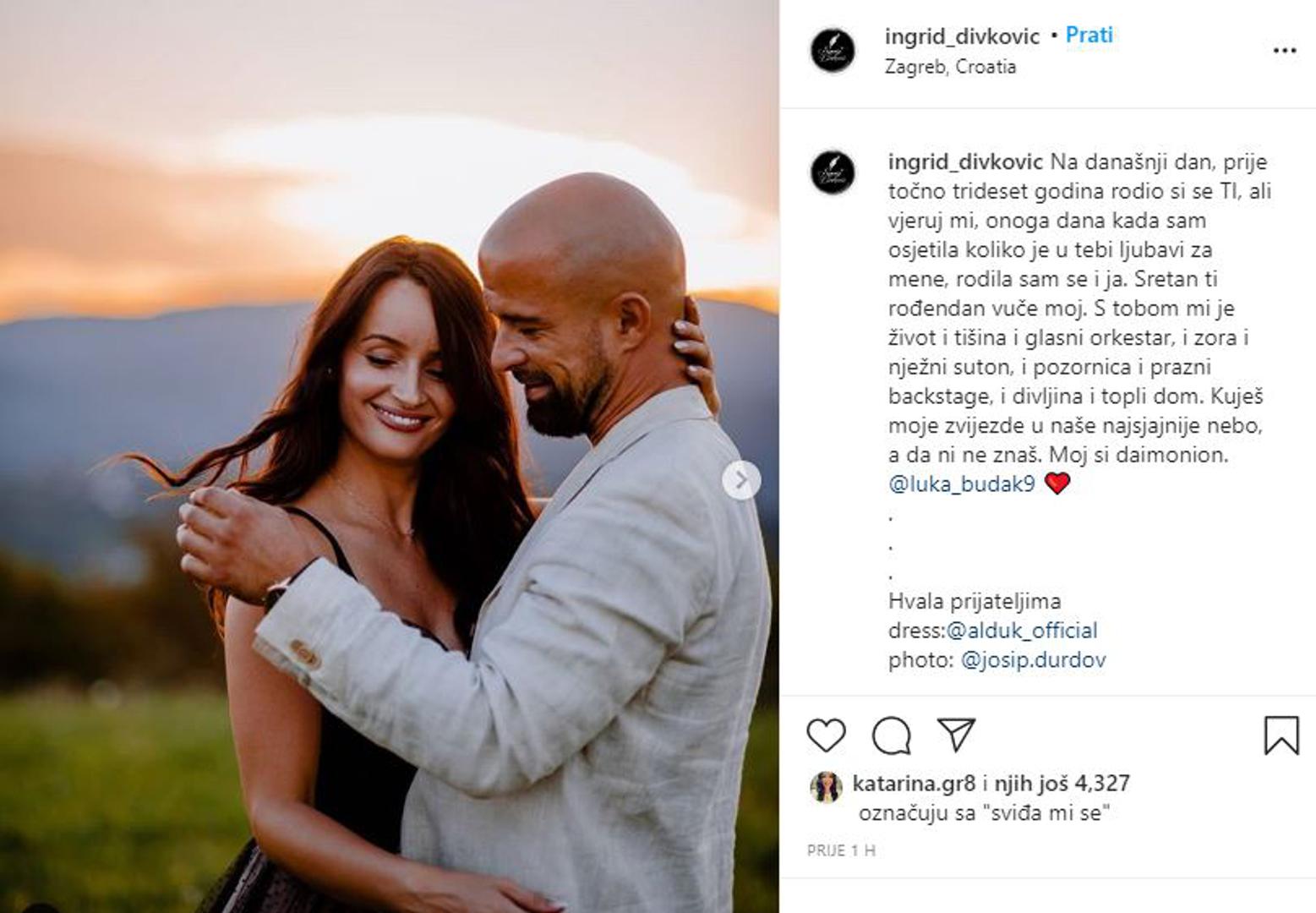 "Na današnji dan, prije točno trideset godina rodio si se TI, ali vjeruj mi, onoga dana kada sam osjetila koliko je u tebi ljubavi za mene, rodila sam se i ja. Sretan ti rođendan vuče moj. S tobom mi je život i tišina i glasni orkestar, i zora i nježni suton, i pozornica i prazni backstage, i divljina i topli dom. Kuješ moje zvijezde u naše najsjajnije nebo, a da ni ne znaš. Moj si daimonion", poručila mu je Ingrid.