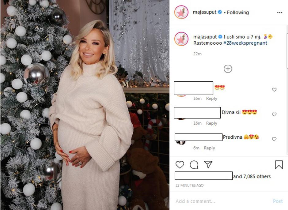 - I ušli smo u 7. mj. Rastemoooo! #28weekspregnant -napisala je Maja u opisu fotografije na kojoj u pripijenoj končanoj haljini pozira uz božićno drvce.
