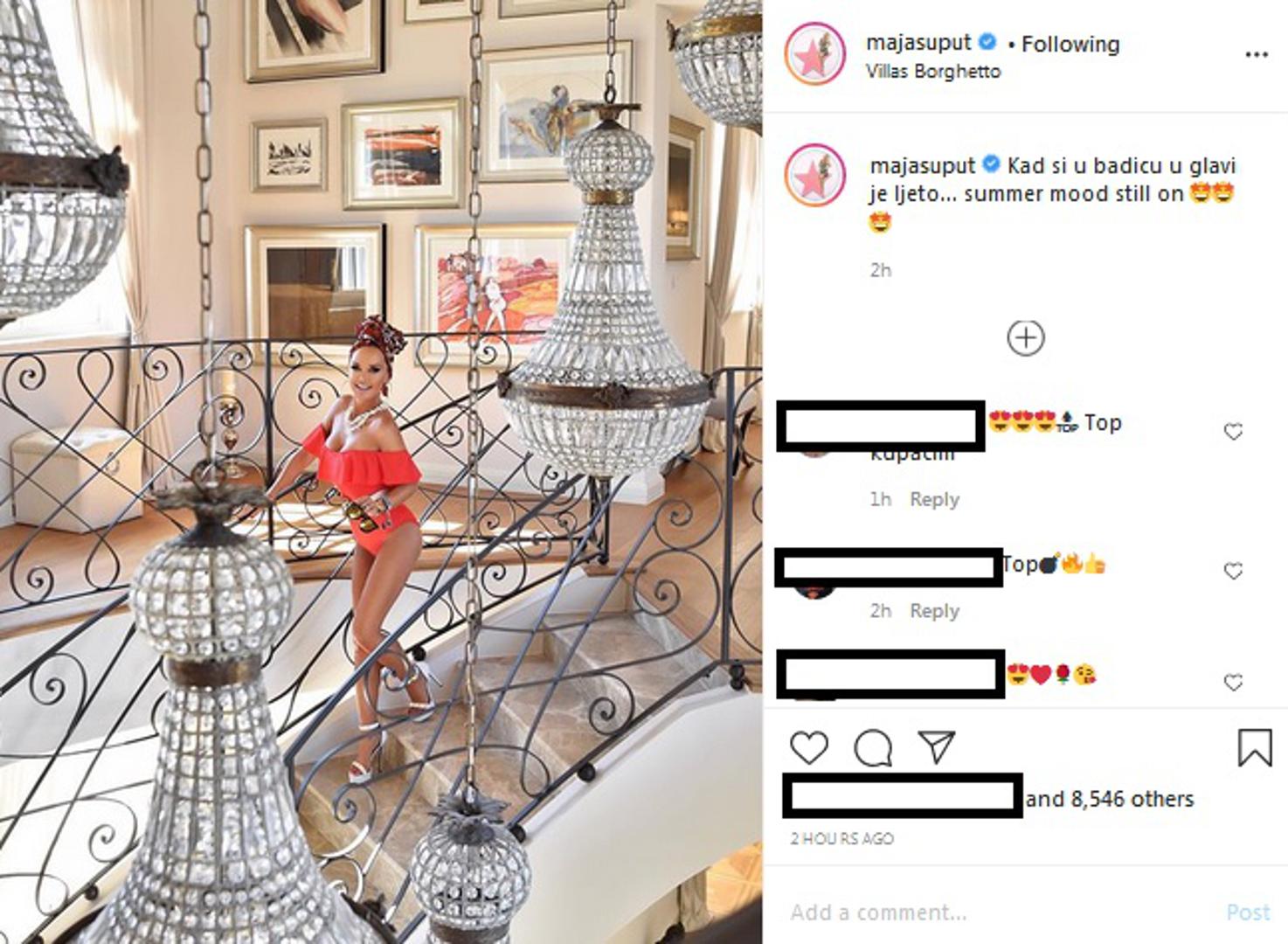 - Kad si u badiću u glavi je ljeto... summer mood still on - napisala je Maja u opisu fotografije na kojoj pozira u jednodjelnom crvenom kupaćem kostimu, bijelim štiklama i maramom na glavi. Fotografija je u samo sat vremena prikupila gotovo 9 tisuća lajkova, ali i mnoštvo komentara.