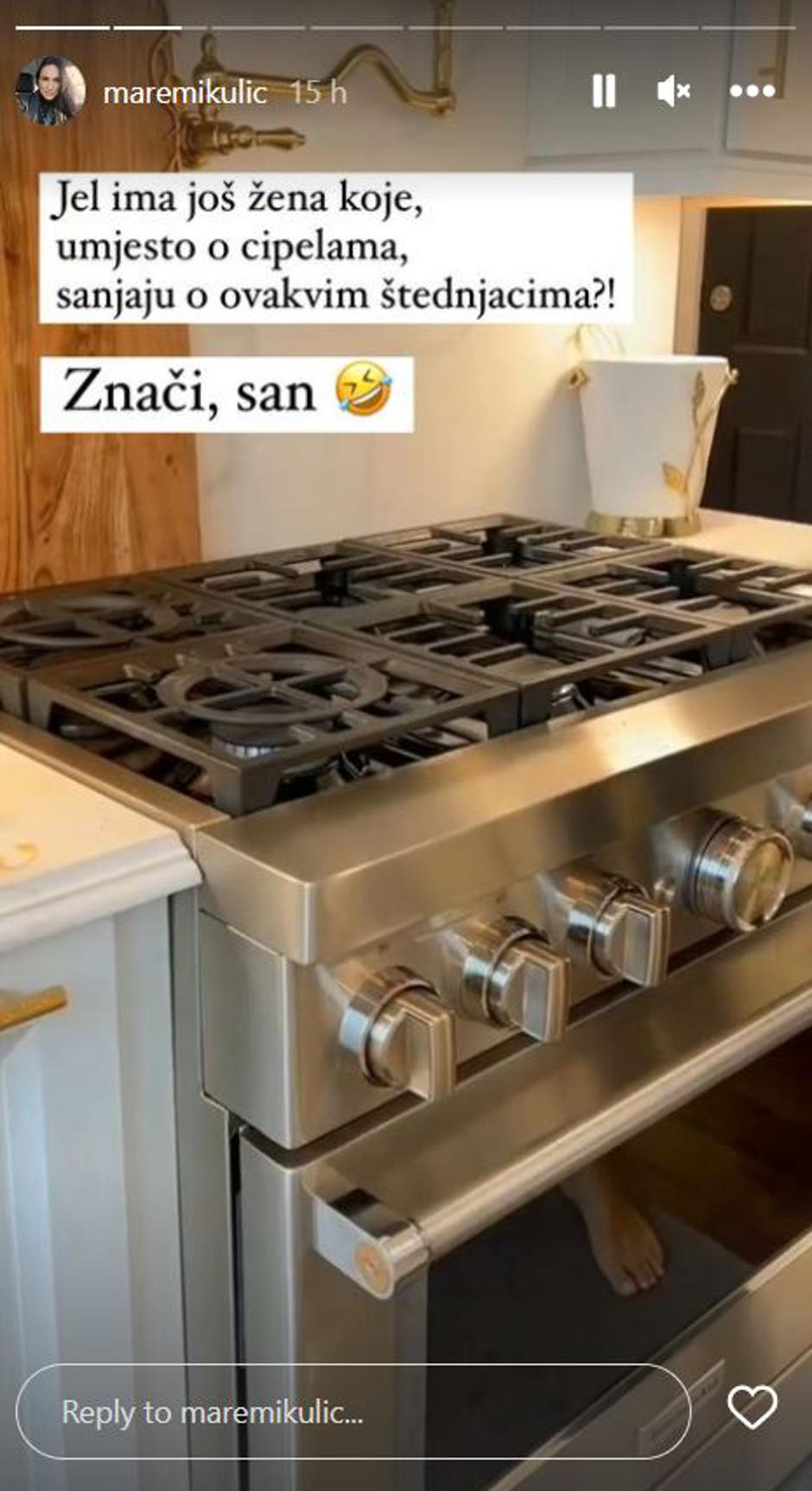 A prije fotografije stanja kuhinje, podijelila je fotografiju štednjaka "o kojem sanja" te je upitala pratiteljice je li jedina u tome.
