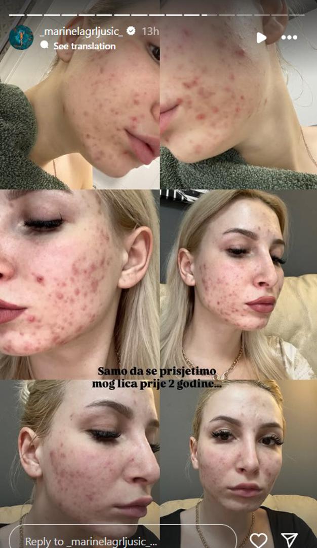 Marinela Grljušić, koju su gledatelji upoznali u showu "Gospodin Savršeni", objavila je na Instagramu informaciju kako pokreće svoj posao te u Požegi otvara svoj salon za uljepšavanje. - Odluka je došla potpuno prirodno, negdje preko ljeta. U jednom trenutku sam shvatila da radim previše različitih poslova, da stalno žurim i da me to sve polako umara. Ali baš zato što sam toliko tražila sebe...na kraju sam se pronašla - objasnila je Marinela u Instagram storiju i rekla je kako je ovo nešto što je zanima i što želi raditi. Objasnila je i kako još uvijek traju radovi u njezinom salonu i pohvalila ih je što su učinkoviti i što dobro rade svoj posao. Dodala je kako će i ona raditi u salonu i baviti se najviše problematikom lica. Nakon toga je u objavi na Instagramu pokazala i kako je njezino lice izgledalo prije dvije godine kada je imala problem s aknama. - Većina vas zna da sam imala jako velike probleme s aknama i kroz sve to sam osobno prolazila, tako da imam vlastiti iskustvo koje mi je danas neprocjenjivo - napisala je i objavila je svoju noviju fotografiju s nedavne proslave svog rođendana na kojoj je pozirala bez imalo šminke.