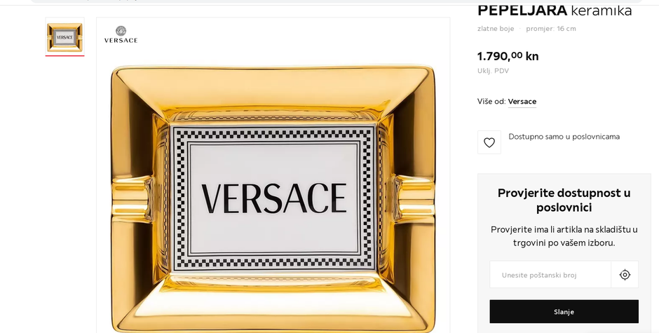 Na fotografiji se vide bijeli svijećnjak, čaše s pićem te posude s čokoladicama, a posebno se ističe jedan detalj jednog poznatog brenda. Naime, radi se o Versace pepeljari koja se u jednoj hrvatskoj trgovini može naći po cijeni od 1790 kuna.