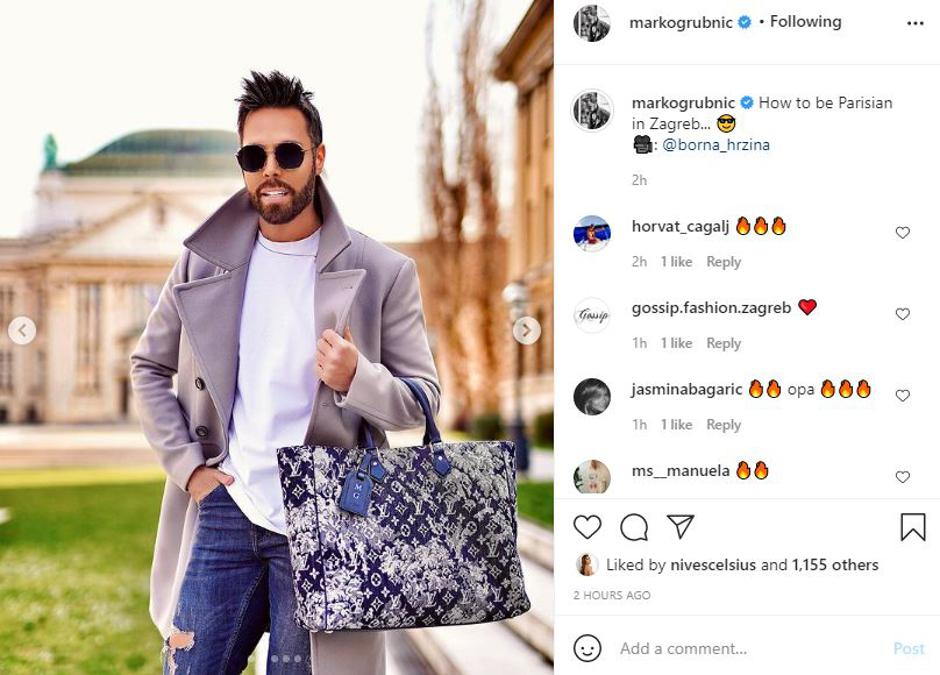 Stilist Marko Grubnić na društvenim je mrežama objavio fotografiju na kojoj je pozirao sa još jednom od svojih skupocjenih torbica iz svoje kolekcije. Ovaj put je bila marka Louis Vuitton, a model torbe Grand Sac.