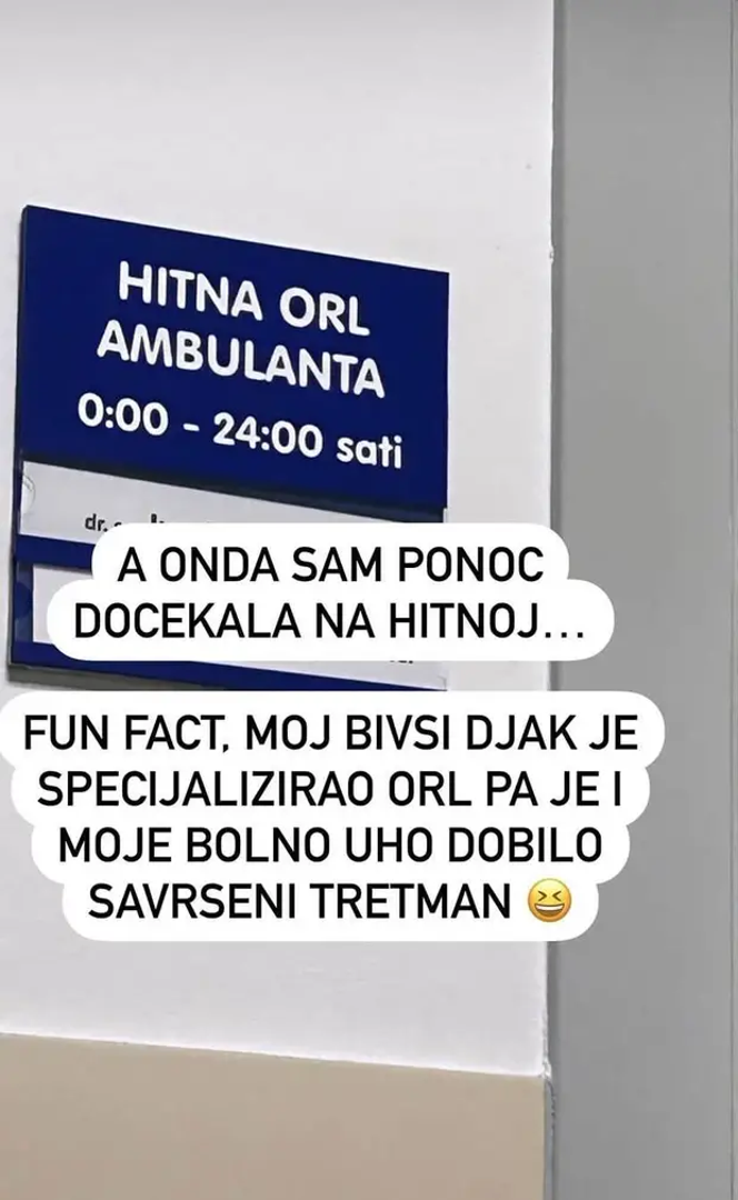 - Fun fact, moj bivši đak je specijalizirao ORL pa je i moje bolno uho dobilo savršeni tretman - otkrila je Martina na Instagramu uz fotografiju s hitne.