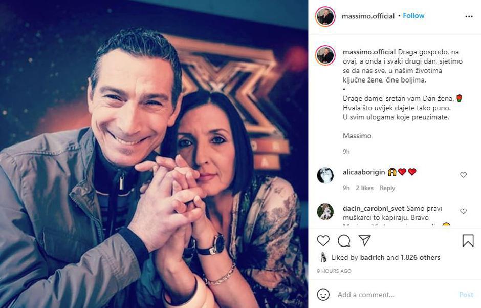 Inače, Massimo je nedavno obožavatelje iznenadio i rijetko viđenom fotografijom sa suprugom Eni. Povodom Dana žena pozirao je sa suprugom, a fotografiju podijelio na svom Instagram profilu. "Draga gospodo, na ovaj, a onda i svaki drugi dan, sjetimo se da nas sve, u našim životima ključne žene, čine boljima. Drage dame, sretan vam Dan žena. Hvala što uvijek dajete tako puno. U svim ulogama koje preuzimate", poručio je pjevač ispod fotografije.Massimo je vezu s Eni započeo još početkom devedesetih, a u braku su čak 30 godina. Posljednji put isto je učinio kada je objavio fotografiju supruge sa kćeri Mirne, a i tada je bio poseban dan - Valentinovo. "Svaki je dan - Dan ljubavi. Samo moje dvije ljubavi ne bi baš podržale ideju da na feedu osvanu svaki dan. Valentinovo je dobar izgovor. To je taj mali krug velikih ljudi koji je u mislima i srcu dok izvodim tu pjesmu. I uvijek. U svakom trenutku života mog", napisao je Massimo tom prilikom.