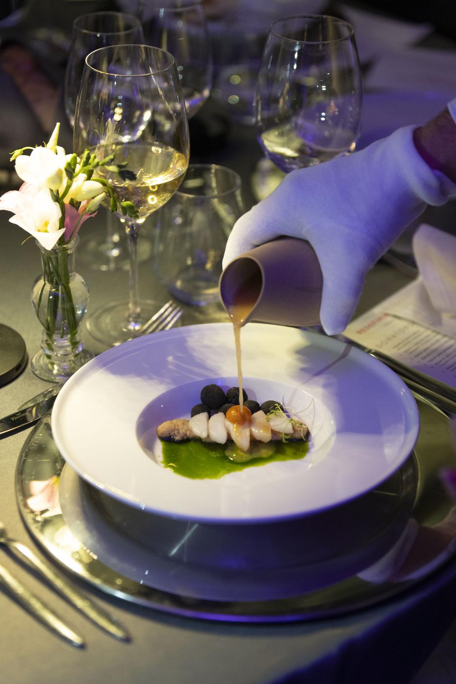 Ekskluzivna večera započela pjenušcem Solum Ružica, koktelima i zalogajima dobrodošlice koje je pripremio Chef godine Gault&Millau Croatia 2024 Marko Đurašević iz restorana Zrno Soli. Goste je poveo u nezaboravnu gastronomsku avanturu: kreirao je zalogaje dobrodošlice i koktel od istih organskih sastojaka koji se nalaze i u kozmetici Scentuals Natural & Organic Skin Care. Večera od pet sljedova okupila je imperesivan tim nagrađivanih chefova koji su sudjelovanjem pružili podršku svojim, često marginaliziranim kolegicama u gastronomiji. Brancin s mlaćenicom, limunom i ananasom chefa Michaela Gollenza iz Michelinovom zvjezdicom nagrađenog restorana Alfredd Keller u Malom Lošinju, savršeno se sljubio s aromatskom Belicom 2023 OPG-a Plovanić iz Kastva na Kvarneru. Žumanjak s cvjetačom i tartufima chefa Igora Jagodica iz ljubljanskog restorana Strelec (1 Michelin*, 4 toques GM), sljubljen je uz višnjanski Chardonnay 2023 vinarije Poletti. Chef Stjepan Vukadin iz restorana il Ponte u Trogiru (3 toques Gault&Millau i Michelin preporuka) gostima je poslužio Jakobovu kapicu s jadranskim kozicama i prženim njokima, praćene kontinentalnom Graševinom Tradition Grand Selection 2017 vinarije Antunović. Uslijedilo je glavno jelo izvršnog chefa u zagrebačkim hotelima Hilton Marinka Topalovića - dry-aged striploin s raviolom buče punjen vrganjima, uz slojevito mediteransko vino Castello Festigia 2022 vinarije Agrolaguna. Kulinarski spektakl zaključen je tartom s pečenim šljivama i crispom od hibiskusa slastičarke Petre Jelenić, čija se slatka senzacija idealno stopila s Roséom Premium 2022 vinarije Belje. Večeru je vodila Izabela Vrtar, a svečani ugođaj posebno je obogatio glazbeni intermezzo proslavljene sopranistice i ambasadorice branda Scentuals Natural & Organic Skin Care Sandre Bagarić te pijanista, skladatelja i umjetničkog savjetnika na Muzičkoj akademiji Darka Domitrovića.