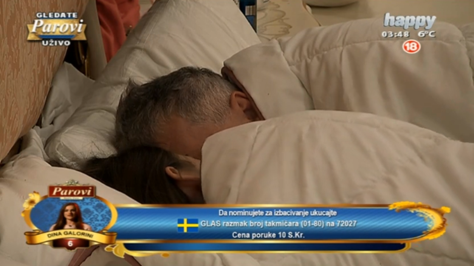 Kada su došli u sobu, podignuli su im pokrivač kako bi vidjeli što se ispod događa jer je Milijana ranije rekla da je Milojko impotentan. Natjecatelji su se razočarali jer nisu uspjeli vidjeti ništa ''konkretno''. Počeli su vikati na njih da su foliranti i da "lažu narod".