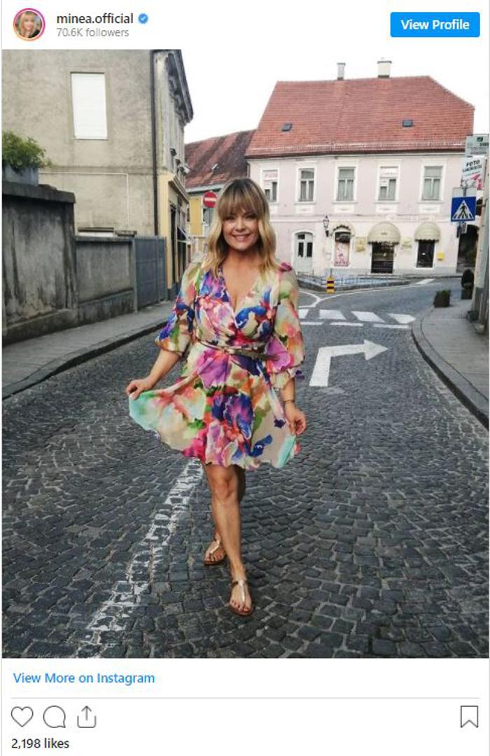 Pjevačica i voditeljica Renata Končić poznatija kao Minea svojim fotkama na društvenim mrežama često osuševljava svoje fanove. Minea voli zanimljive modne kombinacije, a ovaj put je odijenula kratku, lepršavu haljinu sa šarenim uzorkom i dubokim dekolteom.