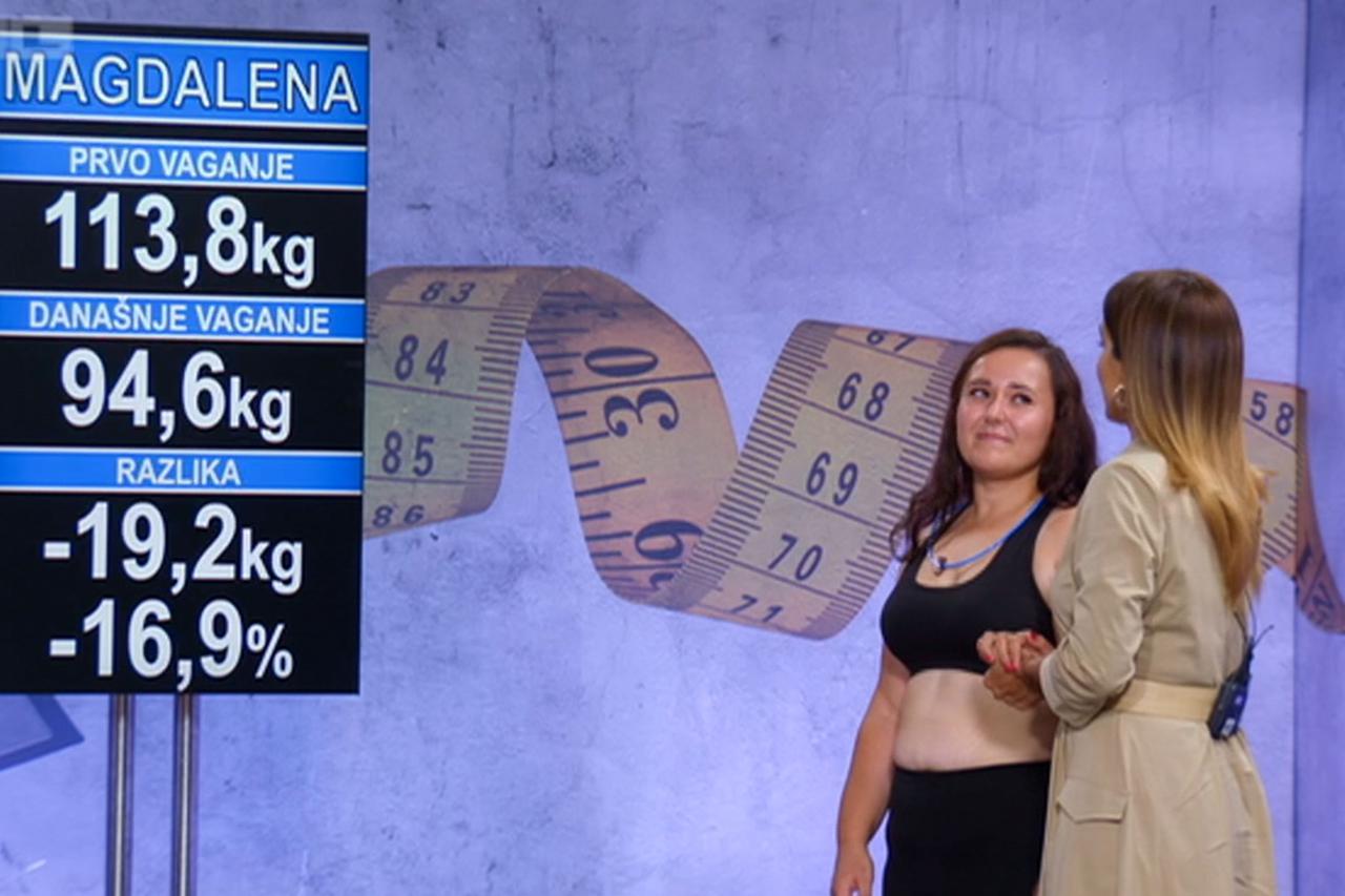 Baro je u show došao sa 159,8 kilograma, a trenutačno je 36,8 kilograma mršaviji. Luka je na vaganju imao +0,6 kg, ali unatoč tomu, ima odličan ukupno rezultat. U show je došao sa 149,8 kilogram, a trenutačno ima 111,2 kg, što je gubitak od 38,6 kg. Nina je posljednja išla na vaganje i ugodno se iznenadila kada je vidjela da je napokon pala ispod 100 kilograma. U showu je počela sa 124 kilograma, a sada ima 99,9 kg, što znači da je izgubila 24,1 kg.