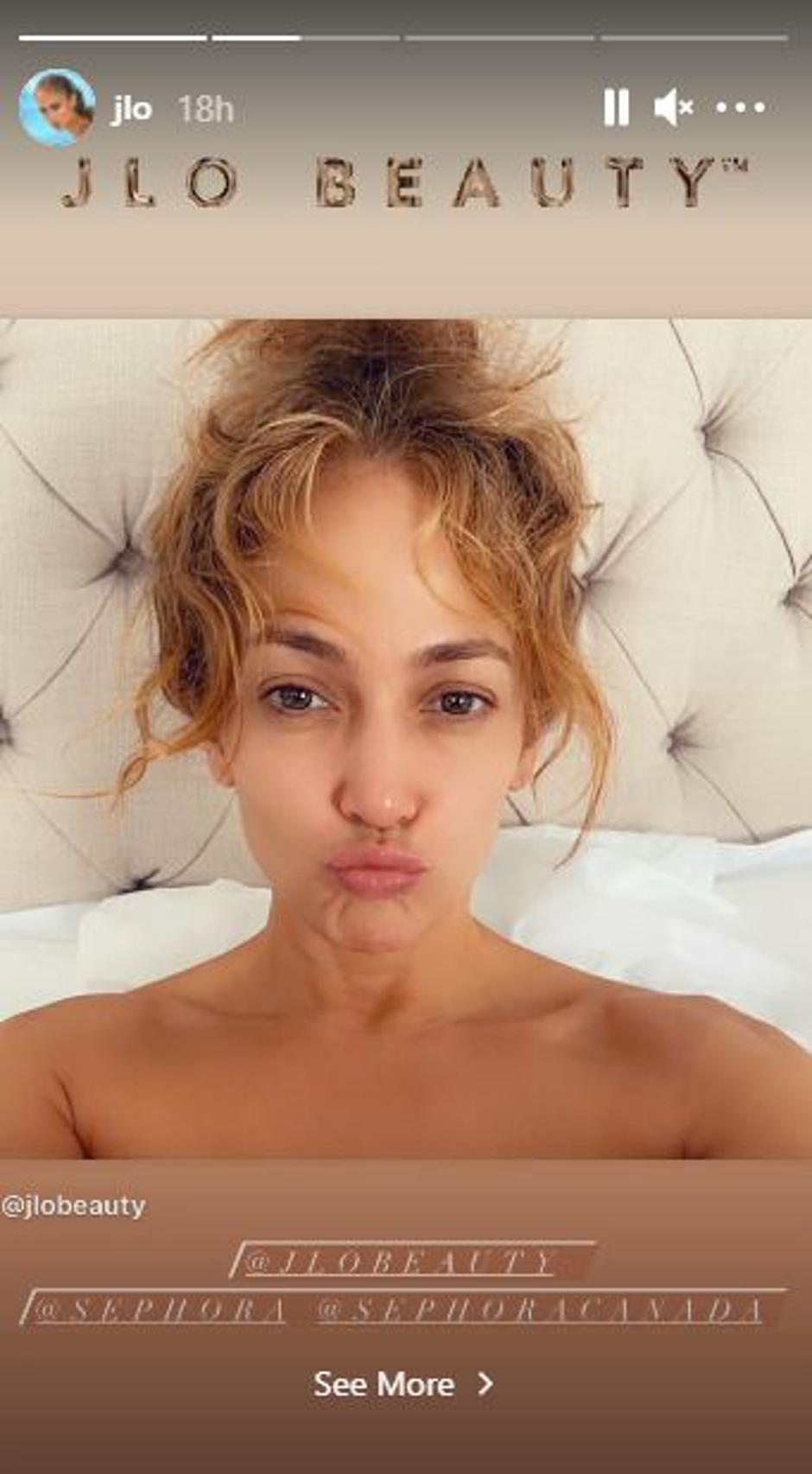 Prethodno je na Instagram Storyju objavila još jednu fotografiju prirodnom izdanju. Naime, J. Lo je ležala u krevetu, bez majice, a kosu je svezala u punđu.