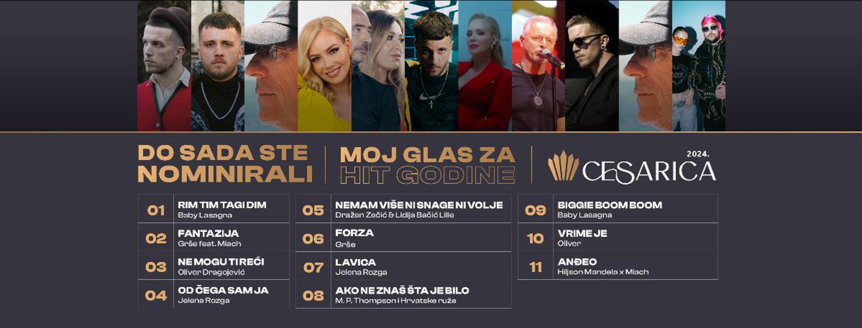 Iz dosadašnjih popisa pjesama/izvođača možemo naslutiti tko će sve doći 07. veljače u Laubu na veliki glam party: Baby Lasagna ima dvije Cesarice (za pjesme Rim Tim Tagi Dim & Biggie Boom Boom), Grše također dvije Cesarice, jedna za pjesmu s Miach Fantazija i druga za pjesmu Forza, Jelena Rozga koja isto ima dvije Cesarice ove godine, za pjesmu Od čega sam ja, ali i za Lavicu, Dražen Zečić & Lidija Bačić za pjesmu Nemam više ni snage ni volje, Marko Perković Thompson za pjesmu Ako ne znaš šta je bilo i Hiljson Mandela s Miach kojoj je ove godine također druga Cesarica, za pjesmu Anđeo. Hoće li se ovom VIP popisu pridružiti Gibonni, Matija Cvek ili Petar Grašo, odnosno potencijalni Hitovi prosinca, znat će se za koji dan. Dvije Cesarice pripale su i Oliveru za pjesme objavljenje tijekom ove godine – Ne mogu ti reći i Vrime je. Još jedan dokaz veličine i važnosti umjetnika kakav je bio Oliver.