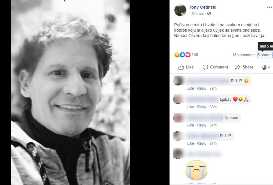 "Počivao u miru i hvala ti na svakom osmjehu i dobroti koju si dijelio uvijek sa svima oko sebe. Nabaci Oliveru koji balun tamo gori i pozdravi ga", napisao je u kratkoj emotivnoj objavi.