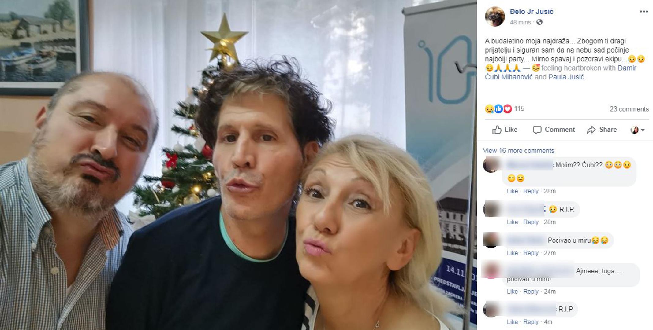 "A budaletino moja najdraža...Zbogom ti dragi prijatelju i siguran sam da na nebu sad počinje najbolji party... Mirno spavaj i pozdravi ekipu", poručio je mlađi Đelo Jusić, a sućut je izrazio i pjevač Tony Cetinski.