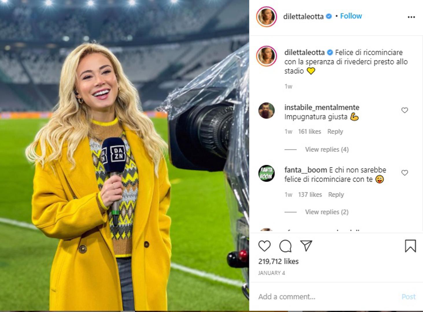 Podsjetimo, talijanska sportska novinarka Diletta Leotta posljednjih nekoliko mjeseci postala je jedna od najpoznatijih voditeljica na svijetu prvenstveno zahvaljujući svom izgledu. Na Instagramu je prati čak 7,3 milijuna ljudi, a sve zanima njen ljubavni život.