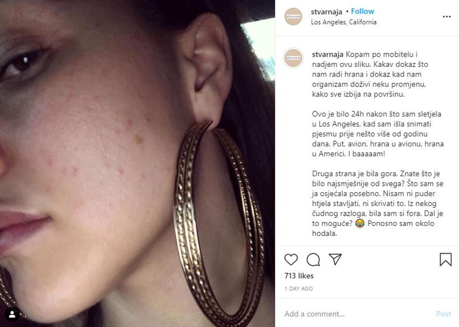 Nakon celulita, Lana je sada pokazala lice s prištevima koje je zaradila prilikom putovanja u SAD prije godinu dana. Pjevačica je fotkala lice puno bubuljica i potom objasnila što se dogodilo i kako se nosila sa situacijom.