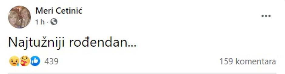 Meri je na Facebooku napisala samo "Najtužniji rođendan" te tako još jednom dirnula svoje obožavatelje koji su joj čestitali rođendan, ali i pružili podršku.