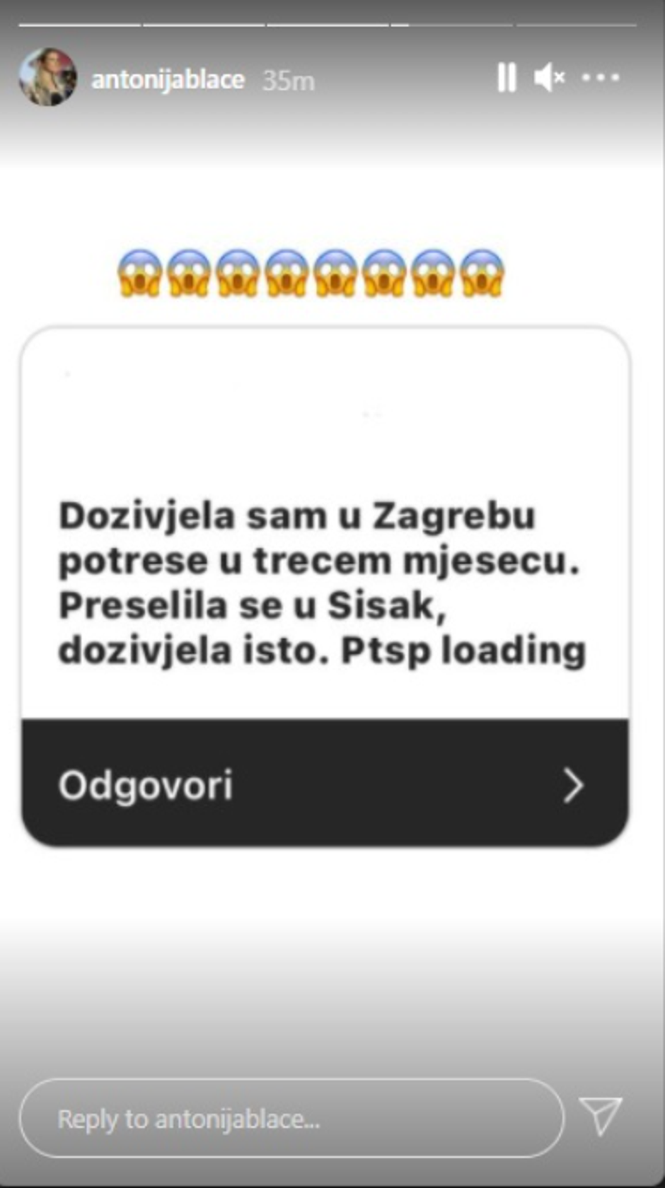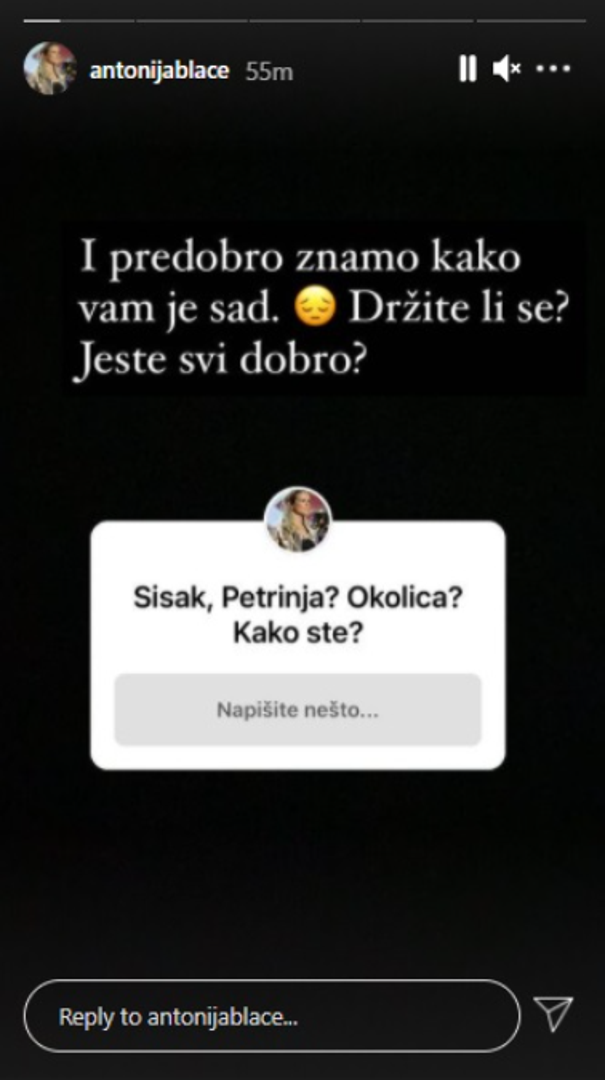 Jedno od omiljenih TV lica voditeljica Antonija Blaće na svom je Instagramu nakon potresa koji je jutros pogodio središnju Hrvatsku upitala pratitelje da podijele svoja iskustva te joj se jave na Instagram. Njihove je poruke odlučila podijeliti na Instagram pričama, a jedna ju je posebno uznemirila.