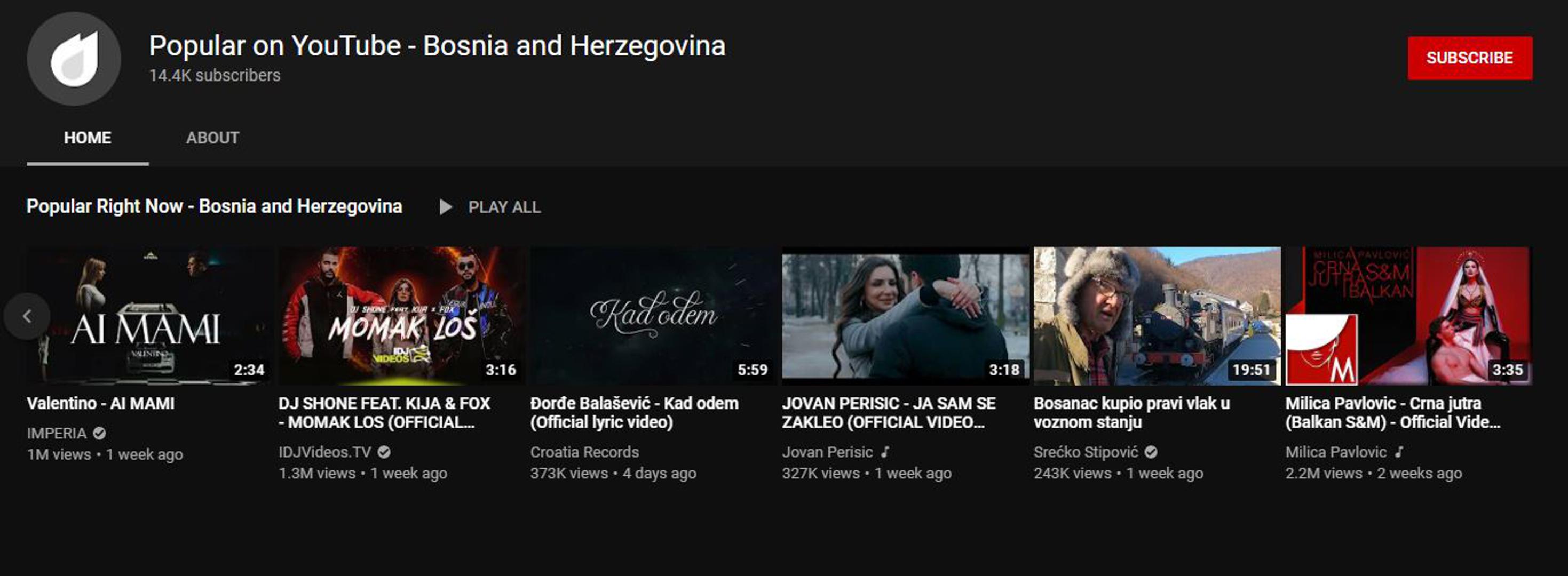 Riječ je o pjesmi ''Kad odem'' koja je u Hrvatskoj, Bosni i Hercegovini i Srbiji među 10 najgledanijih videa na YouTubeu.