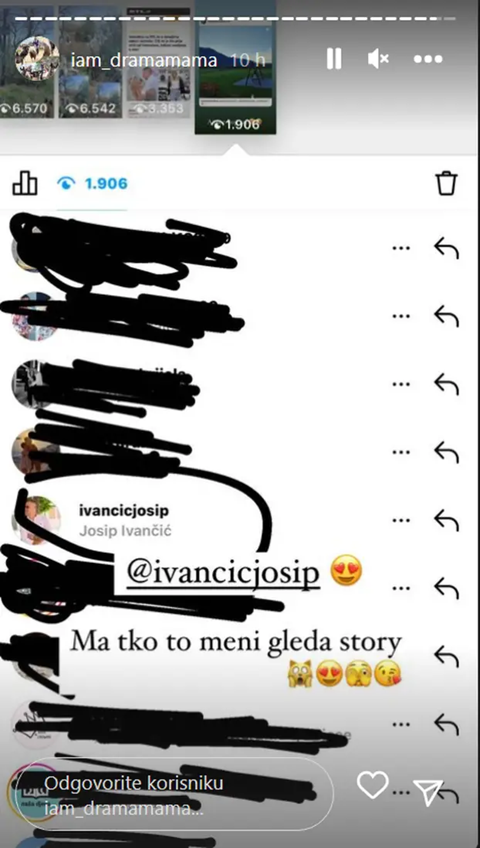 Nije poznato zna li se par i van društvenih mreža i prate li jedno drugo na Instagramu, no Valentini je očigledno drago zbog toga da joj Josip gleda priče, jer je to popratila s nekoliko emojija, među kojima je bilo i zaljubljenih.