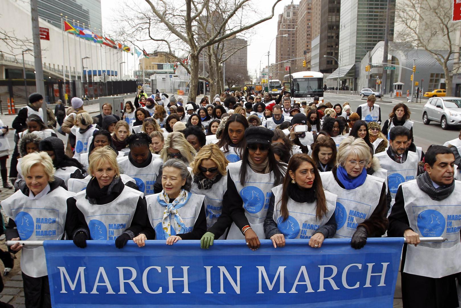 Na proslavi međunarodnog Dana žena u New Yorku okupile su se slavne dame, supermodel Naomi Campbell, glumica Kim Cattrall, Trudie Styler, supruga glazbenika Stinga i mnoge druge. Sve su one sudjelovale u maršu UN-ove organizacije “Žene za mir” koji je upriličen kao potpora borbe protiv nasilja nad ženama.