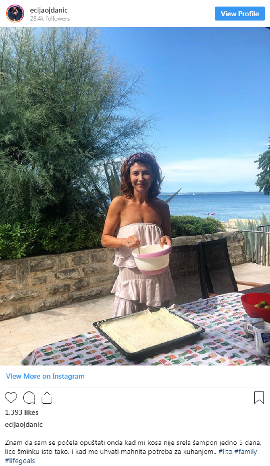 "Znam da sam se počela opuštati onda kad mi kosa nije srela šampon jedno 5 dana, lice šminku isto tako, i kad me uhvati mahnita potreba za kuhanjem", napisala je glumica ispod objave.