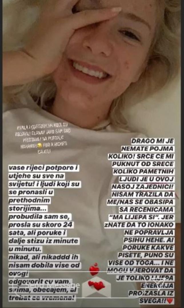 - U mojoj glavi je sad 'nadam se da im se nisam zgadila'. Ali znam da je tamo i puno vas kojima ovo treba. I znajte da niste sami. Akne lupaju jako na psihičko stanje i sliku o sebi - dodala je Zsa Zsa na svom Insta Storyju, a odmah potom obožavatelji su joj se počeli javljati s porukama podrške.