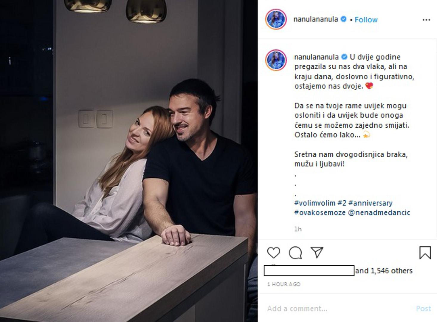 "Dva prekrasna vaša vlaka.Sretna vam godišnjica braka", poručila im je u komentarima jedna od pratiteljica, a čestitkama su se pridružili mnogi. "Bravo za vas dvoje! Ponosna sam na vas", "Predivni ste", "Još dugo, dugo godina vam želim", pisali su im pratitelji.