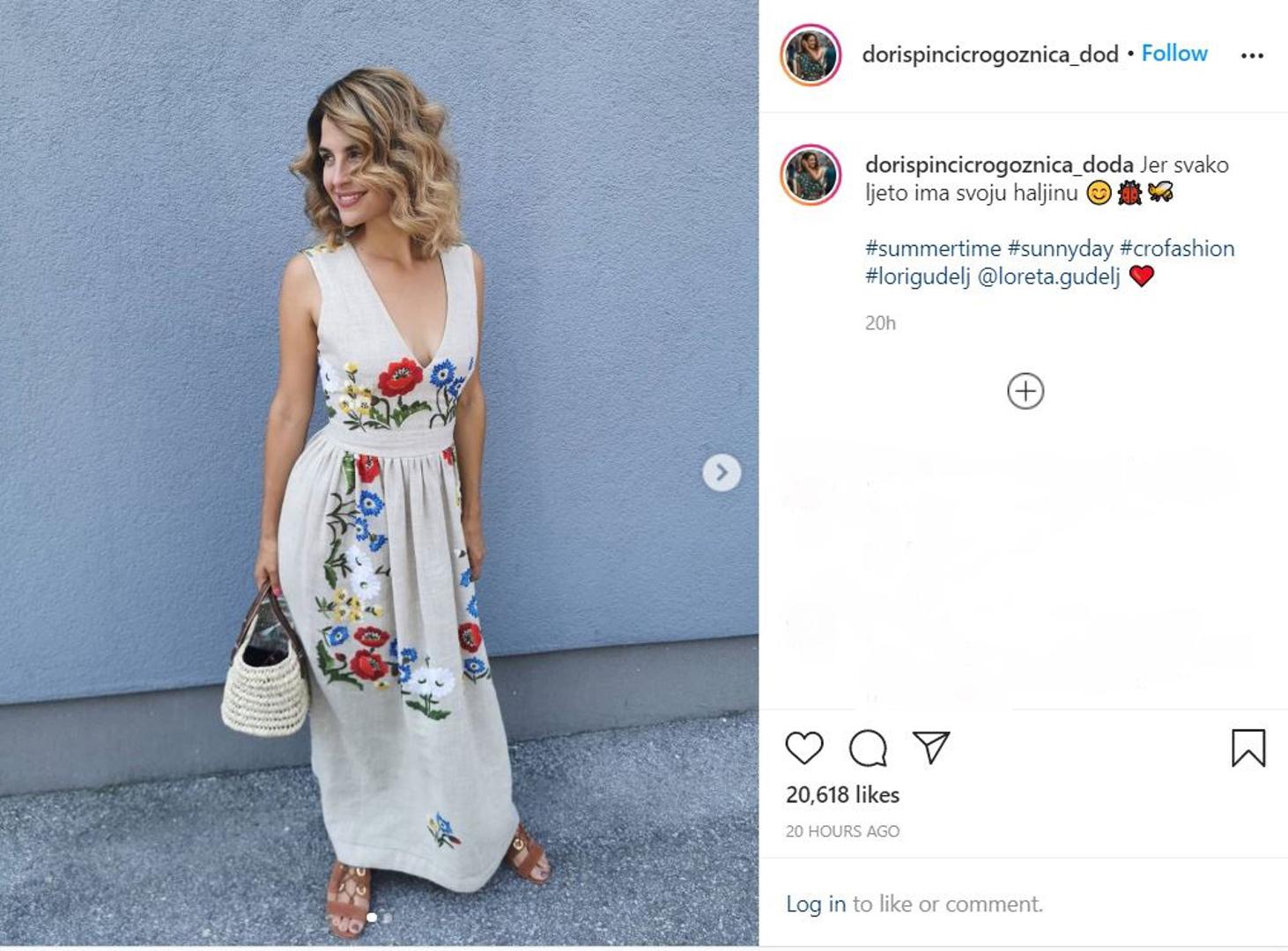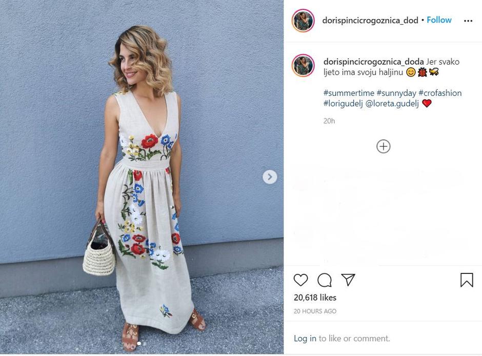 Glumica i voditeljica Doris Pinčić na Instagramu često objavljuje fotografije odjevnih komada u koje se zaljubila. To je učinila i ovaj put s haljinom dizajnerice Lorete Gudelj. Neobično za Doris, obukla je haljinu koja ima duboki dekolte, a fotka je odmah skupila više od 20.000 lajkova.